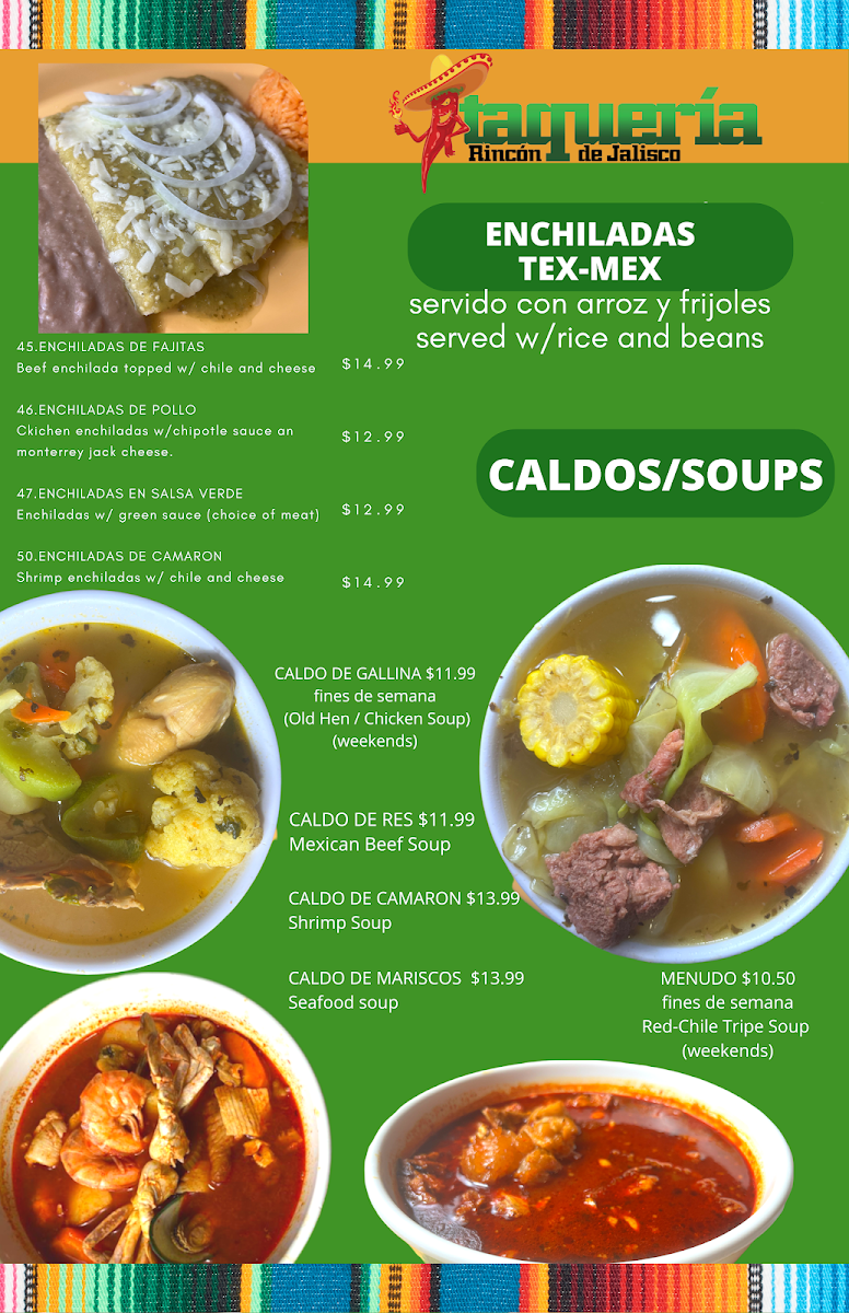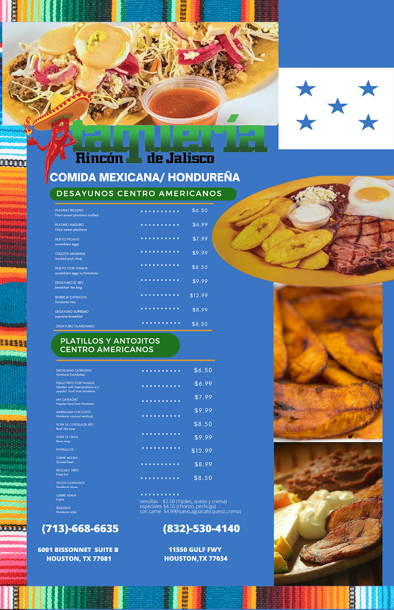 With such a broad menu, Taqueria El Rincon De Jalisco truly offers a taste of authentic Mexican and Honduran flavors, making it a go-to spot for anyone craving traditional dishes or a hearty, flavorful meal. Whether you’re in the mood for a quick taco or a full-course feast, this restaurant has something for everyone.